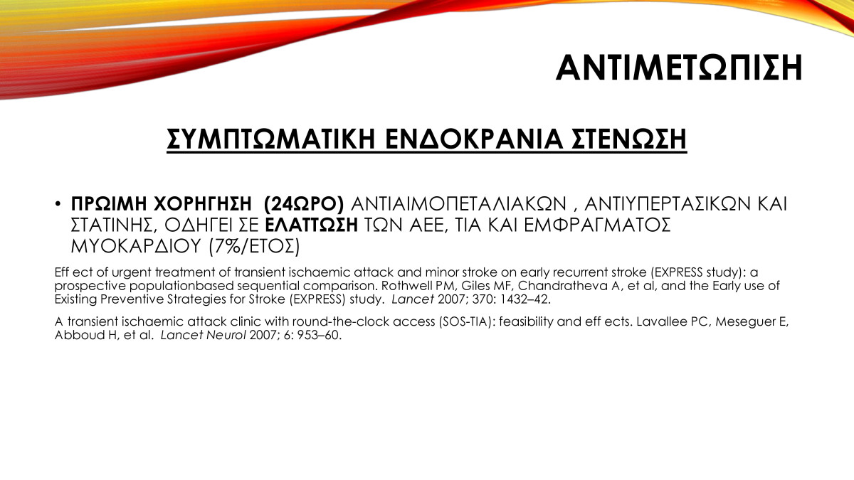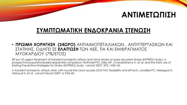 • Στενώσεις ενδοκράνιων αγγείων – Ενδείξεις αντιμετώπισης